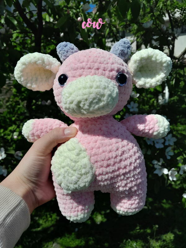 Ручная работа, придающая этой игрушке особую стоимость и непревзойденность. • ижный розовый цвет привлекает внимание и добавляет очарования. • Глаза голубые • Значительное дополнение к ее виду - это мягкие ушки белого цвета. • Серые рожки являются неотъемлемой частью ее уникального лица. • Присутствующий небольшой хвостик. • Изготовлена из микро полиэстера. Эта игрушечная коровка - воплощение искусства и нежности в одном. Она создана для объятий и тепла.