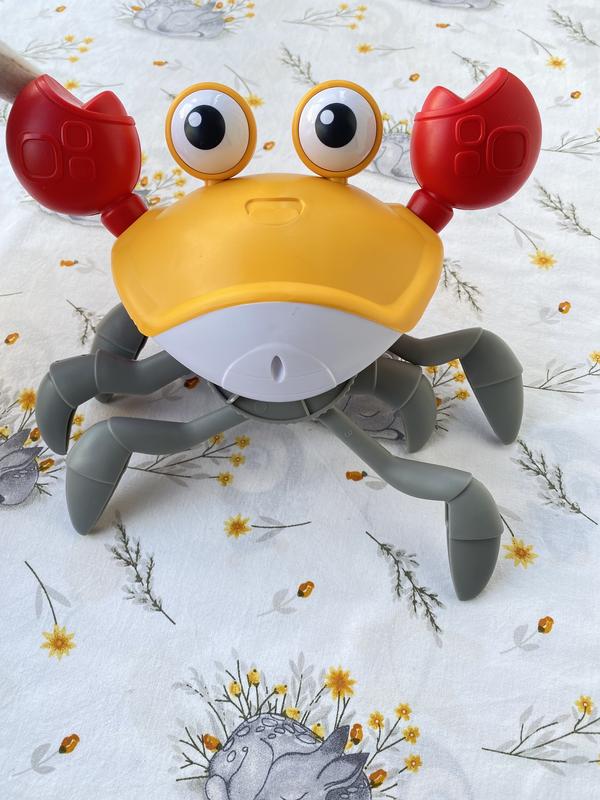 Интерактивная игрушка краб🧸 Детали игрушки реалистично отражают движения краба. Музыка и шумовые эффекты. В темное время игрушка музыкальный краб устроит веселое световое шоу. Она станет отличным партнером для игр малыша в одиночестве или главным заводилой в компании детей. У краби есть: ✅Датчики определения препятствий; ✅Светящиеся элементы; ✅Звуковоотражающий модуль; ✅Встроенная литиевая батарея. Характеристики: ✔️Цвет желтый; ✔️Материал: АБС-пластик; ✔️Размер: 230х140х110 мм; ✔️Вес: 310 г; ✔️Питание: встроенный аккумулятор; ✔️Зарядка: через USB; ✔️Время зарядки: 2 часа; ✔️Время непрерывной работы: 30 мин. В комплекте идет зарядный кабель с индикацией зарядки. Когда заряжается – светит диод, по окончании зарядки диод гаснет.