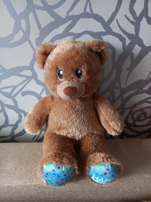 мишка с днём рождения, большой, замеры на фото, состояние нового,,эти игрушки можно одевать , обувать, для этой фирмы продаётся обувь и одежда