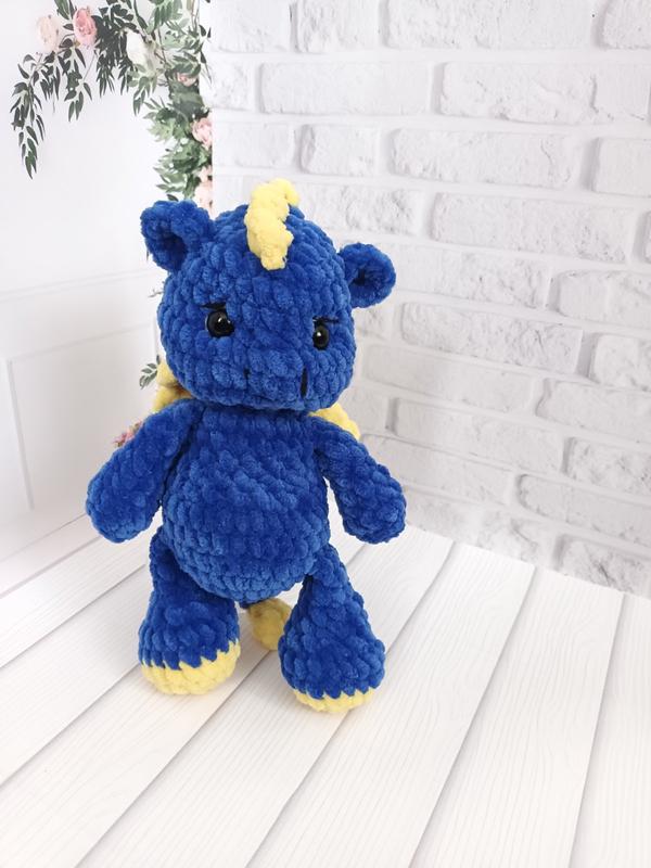 Вязаная игрушка Дракон, умест следующий 2024 год — это именно год дракона Высота 19- 20 см Выполнен из гипоаллергенной плюшевой пряжи Глаза на безопасном креплении Наповнювач холофайбер доступен к заказу