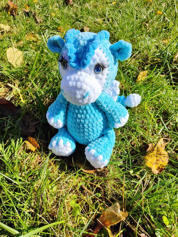 дракончик, связанный из плюшевой пряжи. высота 35см