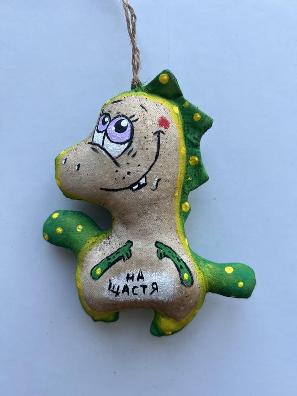 Підвіска на ялинку,чи в машину Дракончик,символ наступного року. Іграшка зроблена в техніці грунтованого текстилю,та ароматизована кавою,та ваніллю.Чудовий невеличкий подарунок.Про необхідний напис пишіть в повідомленні при замовленні.