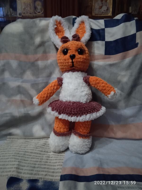 Красивый зайчонок из плюшевой пряжи