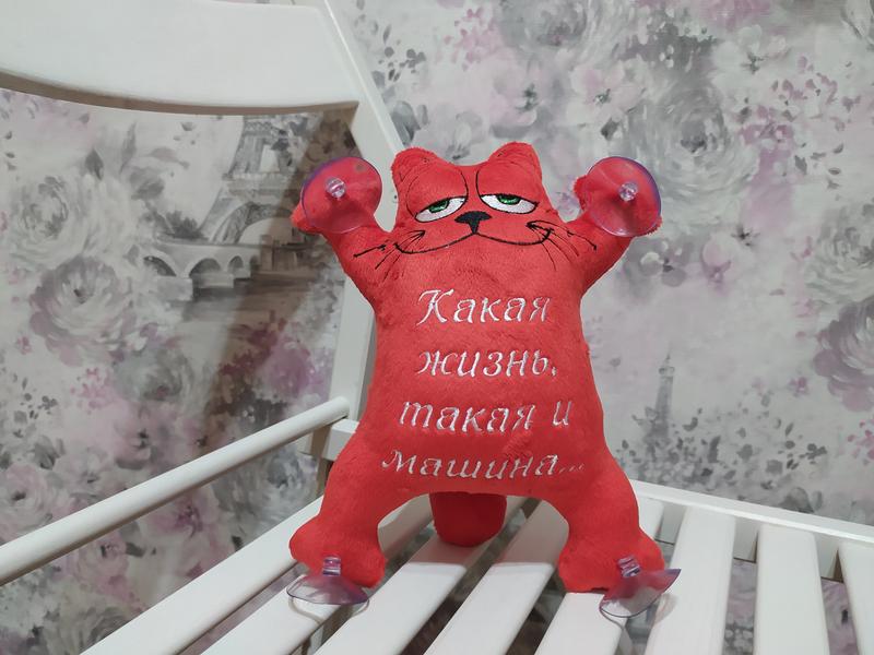 Игрушка кот Саймона в машину c вышивкой красный "какая жизнь такая и машина" Ищете идеальный подарок автомобилисту ? Игрушка кот в машину с надписью - это то, что вы искали Высота игрушки 24 см, Тело: красный плюш Декор - присоски Наполнитель: синтепух машинная вышивка Уход:сухая чистка/ чистка моющим пылесосом/ деликатная машинная стирка при 30-40 градусах Если нужны: другой язык/другой цвет ткани/другой цвет вышивки укажите при оформлении заказа в комментариях
