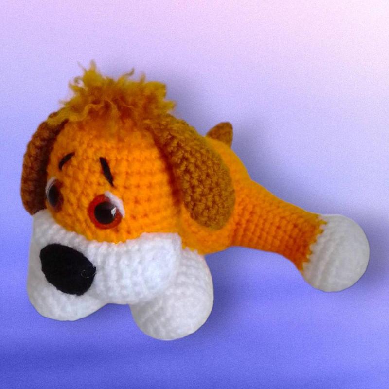 Собачка, игрушка ручной работы Высота 11 см, Глаза на безопасном креплении Связан из акриловой детской пряжи, не вызывает аллергию. Пряжа не выгорает и не меняет цвет. Рекомендована ручная стирка