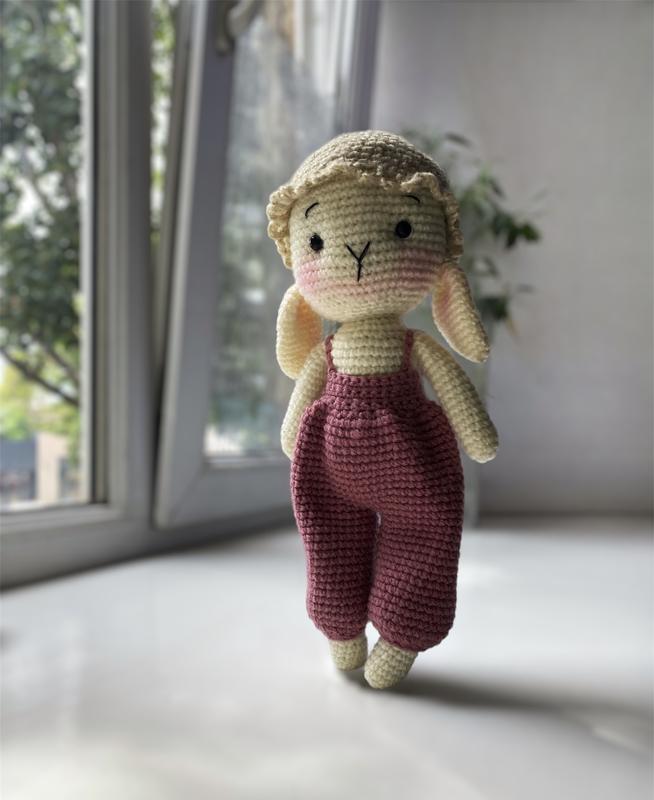 Зайчонок ручной работы. Глаза на безопасном креплении, комбинезон с пуговицей, снимается, шапка пришита.