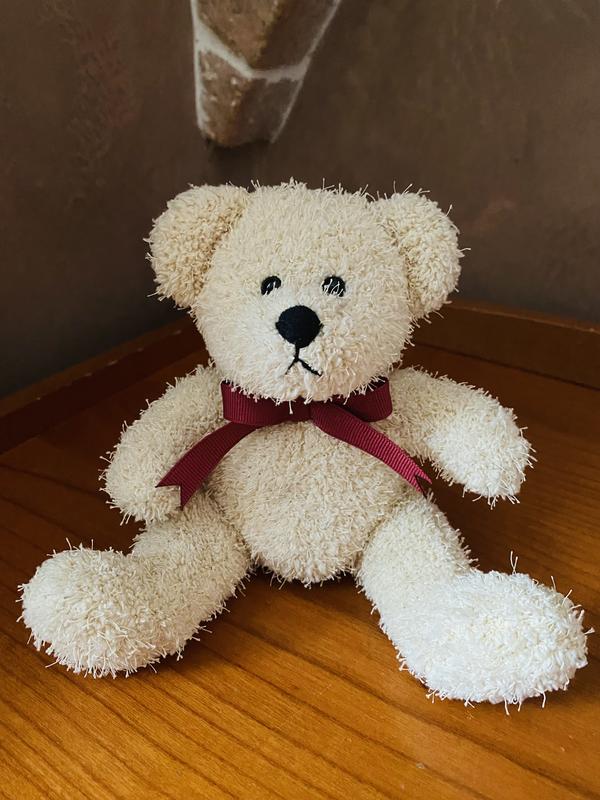 Цвет бежевый. Приятный на ощупь. В нижних лапках слойики. Размер на фото.