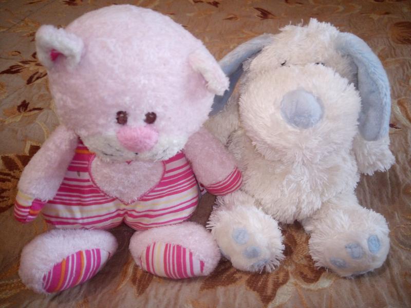 Мягкие игрушки для малышей, котик и пёсик. Качественные и очень приятные на ощупь, без посторонних запахов. Высота в сидячем положении около 12 см. Продаются парой.