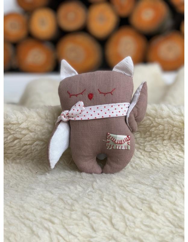 Сова - м'яка іграшка з текстильної колекції для найменших. Іграшка пошита з льону і бавовни, наповнена гіпоалергенним холофайбером. Мила мордочка сови і кишенька вишиті дбайливими руками наших майстринь Крильця і хвостик рухаються. Зручна, м'яка і безпечна. Стане улюбленцем малюка з першого знайомства . Чудовий подарунок на хрестини,день нвродження для маленьких діток. В колекцію м'яких текстильних іграшок ще входять котик, сова, ведмедик, зайчик. А також ковдра (одіялко) з будиночком, які мають кишеньки для гри. Такий презент буде доречним для немовлят і їх люблячих батьків.
