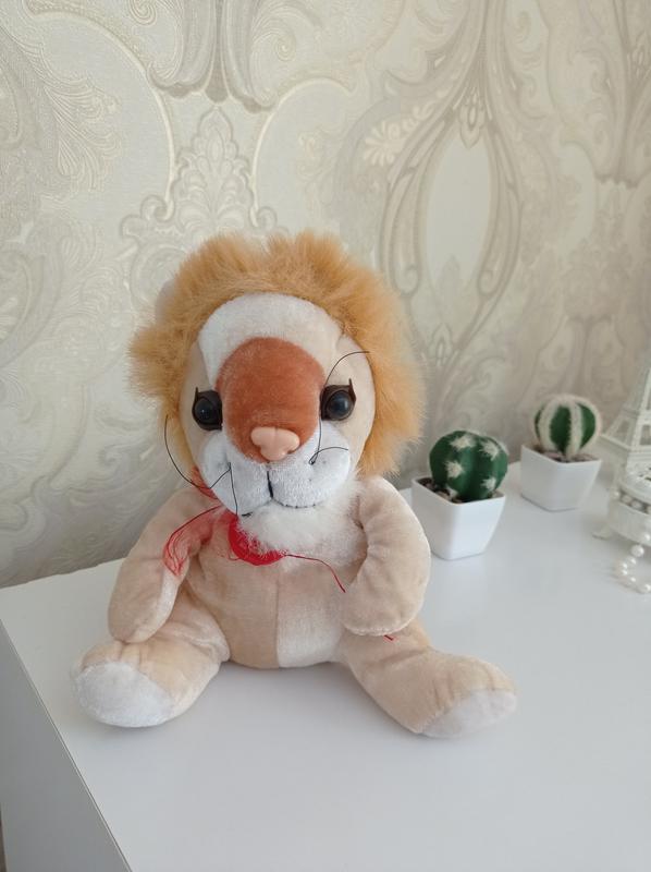 Мягкая игрушка лев. Цвет – свет оранжевый с белым. Размер 15*20 см.
