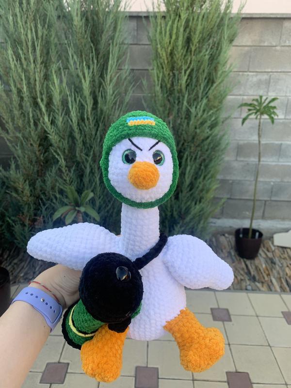 А вы слышали о боевых гусях, которые защищают Украину? По легенде русской аллергии, это биологическое оружие Украины)) Встречайте, Боевой гусь Байрактар с джавеленной Плюшевый гусь и джавелина. 100% ручная работа Изготовлено из детской гипоаллергенной пряжи. Наполнитель холлофайбер. Высота игрушки 23 см Цена 850грн