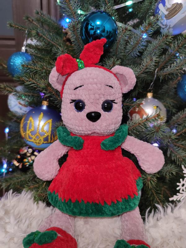 Плюшевая косичка Соля точно станет любимицей вашего ребенка. Ручная работа. Пряжа плюшевая гипоаллергенная, глаза на безопасном креплении, наполнитель - холлофайбер. Платье, пинетки и повязка снимаются. Высота игрушки - 29 см
