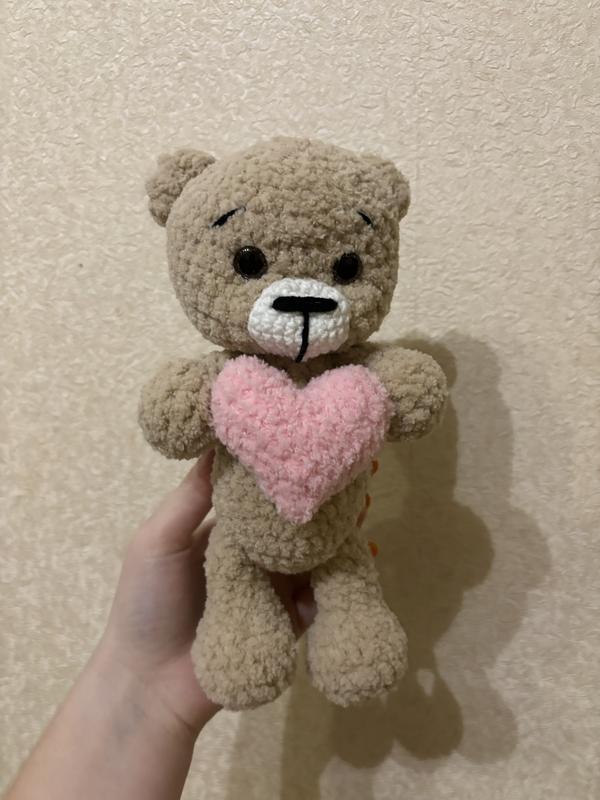 Вязаный мишка с сердцем ручной работы