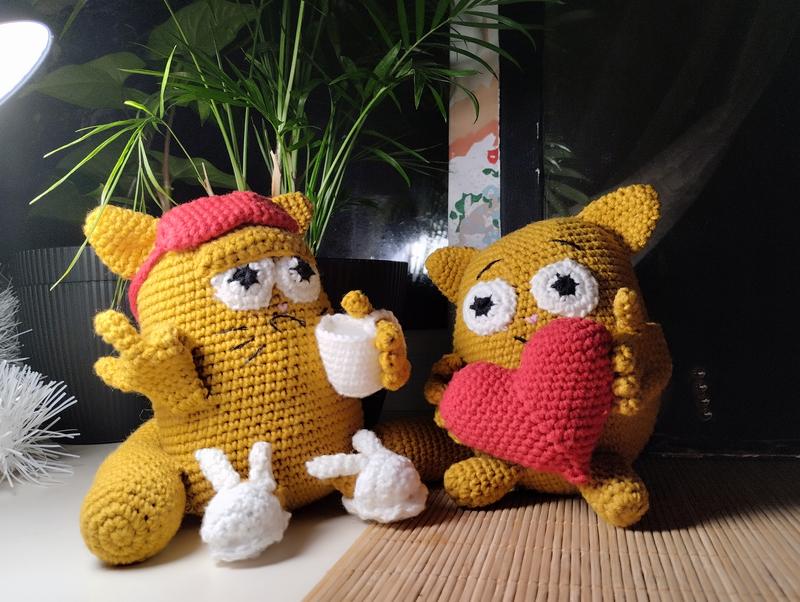 Рыжий котик с сердцем и котик с утренним кофе Размер: 20см ✨Праздничная упаковка гарантировано 🫡