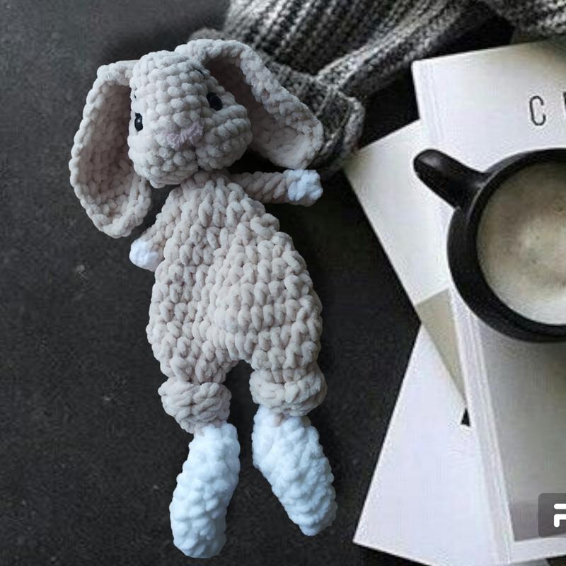 маленький кролик комфортер для самых маленьких связан из плюшевой пряжи