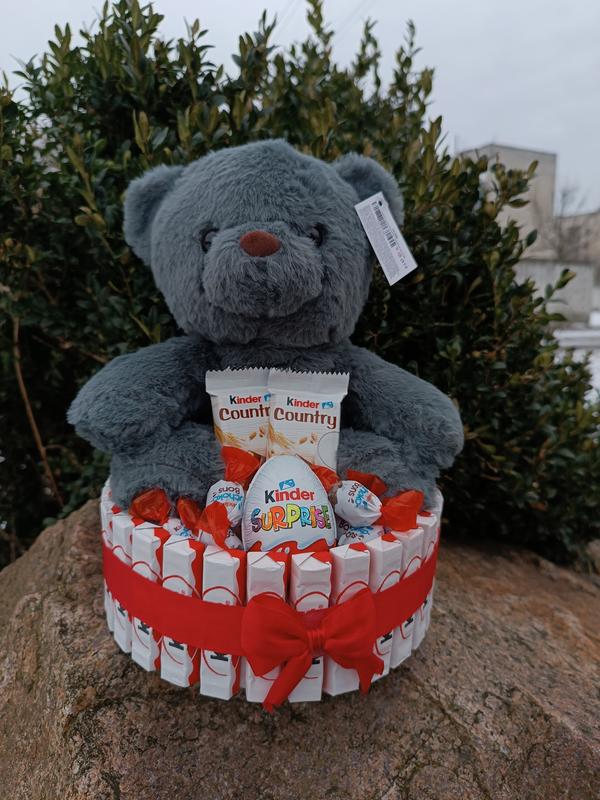 🎁 Наполнение: • Киндер шоколад • Киндер сюрприз • Цукерки schoko bons • Киндер country • Ведмедик ✨ Диаметр 20 см ✨ 💸 850 грн