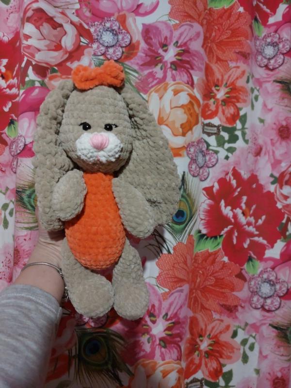 игрушка зайчонок,гипоаллергенная плюшевая пряжа, наполнитель холлофайбер, вычитана на безопасном креплении,высота 30см