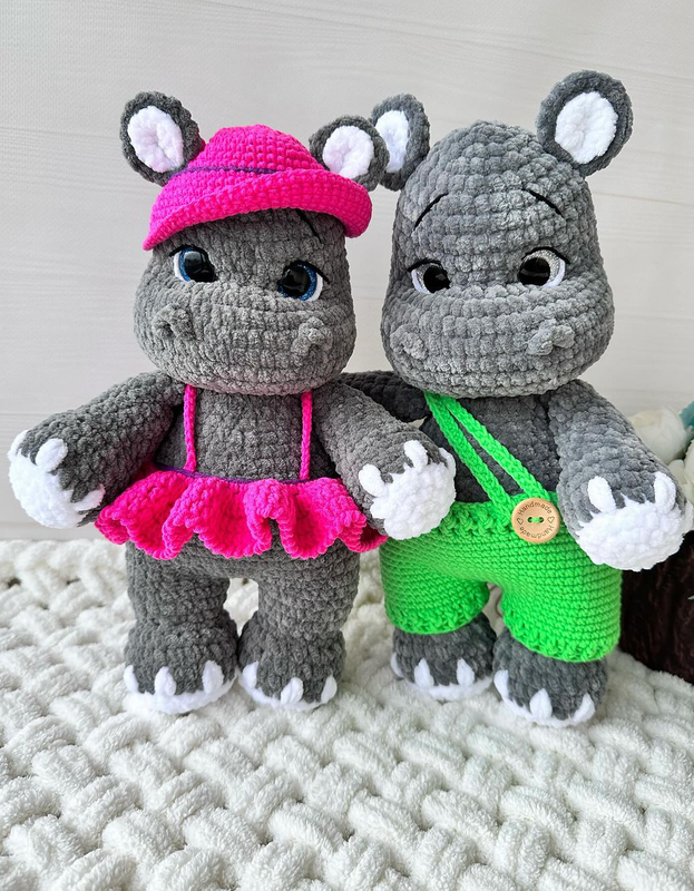 бегемотик из плюшевой пряжи рост 27-30 см одежда снимается безопасные материалы для детей