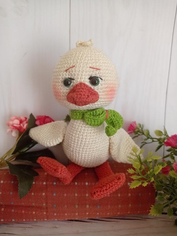 Іграшка, зв'язана гачком з гіпоалергенної полубавовняної пряжі. Очі на безпечному кріпленні, зріст 17 см.