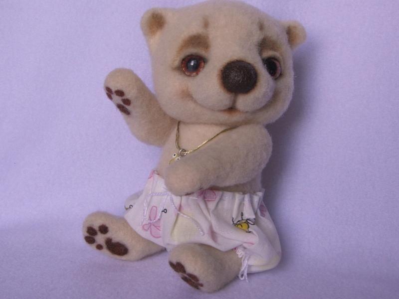 Продан. Под заказ. Срок 7-10 дней.Солнечный мишка Сани милаха-улыбаха, радуется солнышку и хорошим друзьям. Мишка выполнен в технике сухого валяния из новозеландского кардачеса (100% овечья шерсть) Голова и лапки подвижны, сидит самостоятельно, стоит с опорой, глазки стеклянные. Штанишки из хлопка не снимаются.