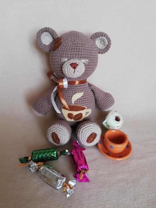 Сувенирный мишка Капучинка для любителей кофе и кофейных напитков. Рост мишани 24 см, сидя 18см. Выполнен из пряжи YarnArt jeans, апликации из фетра, наполнитель холлофайбер. Готов разделить с вами кофе тайм. В кругу друзей веселее. Дополнительные характеристики: Вид : Мишка