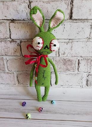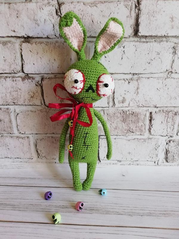 Під замовлення. Термін 5 днів.Веселі страшилки Нехай страх проженуть геть. Малюємо ми усмішки, Йдемо до вампірів в ніч. Зомбі-зайчик, 29 см з вушками. Додаткові характеристики: Вид: Зайчик