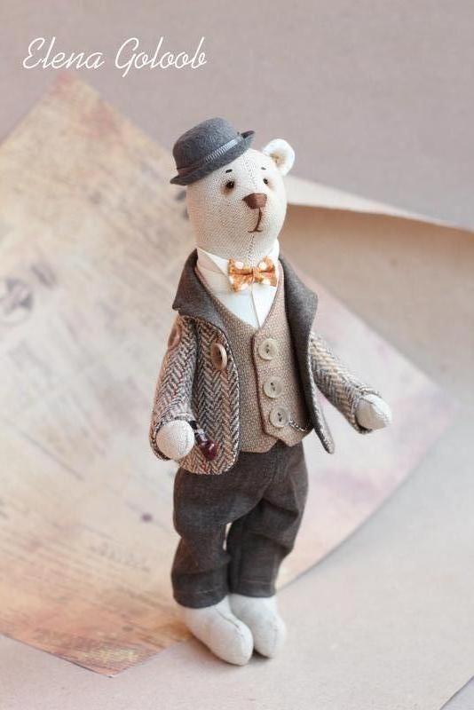 Серьезный и строгий текстильный медведь в стиле тильда Английский Джентельмен в твидовом пиджаке и фетровой шляпе , который любит посидеть, покуривая трубку и послушать интересного собеседника Все работы выполнены в единственном экземпляре Возможен повтор "по мотивам"- цветовое решение на любой вкус Товар под заказ