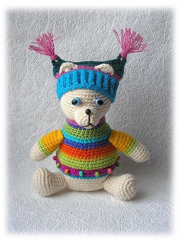 Мишка Карамелька связан крючком.