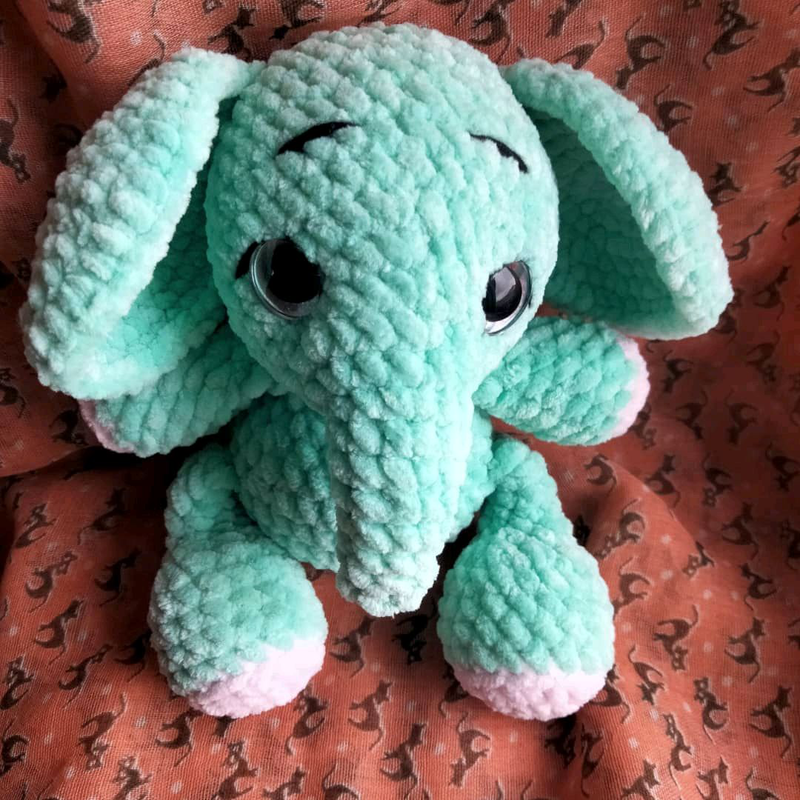 Тип іграшки: Тварини Слоник. Ріст 18 см. Матеріали: гіпоалергенна дитяча велюрова пряжа, наповнювач-холлофайбер, очка і носик на безпечному кріпленні.