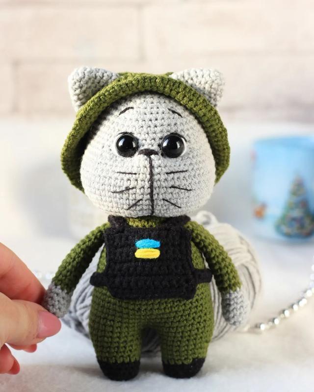 Все мы знаем, что наши ЗСУ - Котики! Предлагаю вам отличный подарок любому нашему защитнику, или детку! Этот котик может стать отличным оградом детского сна, будто родной человек рядом и оберегает тебя. Так и талисманом военному, у которого будет маленькая часть дома, где его ждут и любят! Котик изготовлен из полухлопка! Все детали хорошо пришиты, а глаза на безопасном креплении, и поэтому их можно положить в кроватку даже до самых маленьких деток. Наполнение холлофайбер. Рост около 16 см. При желании можно вместо серого сделать жаркого или черного или другого котика. И изменить цвет глаз или добавить вышивку на жилет. (все это считается персонализацией) Срок изготовления 3-4 рабочих дня! Товар изготавливается по заказу