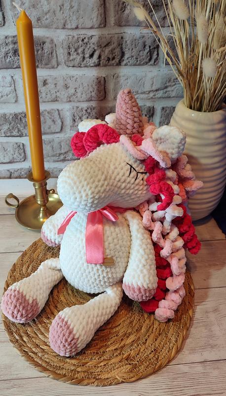 Виконаний із плюшевої пряжі (100 % мікрополіестер) Наповнювач - холофайбер Висота - 40 см Зроблено з любов'ю! Навіть якщо схеми однакові, кожна іграшка виходить унікальною. Також, за бажанням замовника, можуть бути внесені зміни у зовнішній вигляд виробу. Залежно від персоналізації, може змінюватися вартість виробу. Готова відповідати на запитання та приймати побажання щодо замовлення! Дякую, що завітали у мою казкову крамничку) Товар виготовляється на замовлення Колір, як на фото, або інший