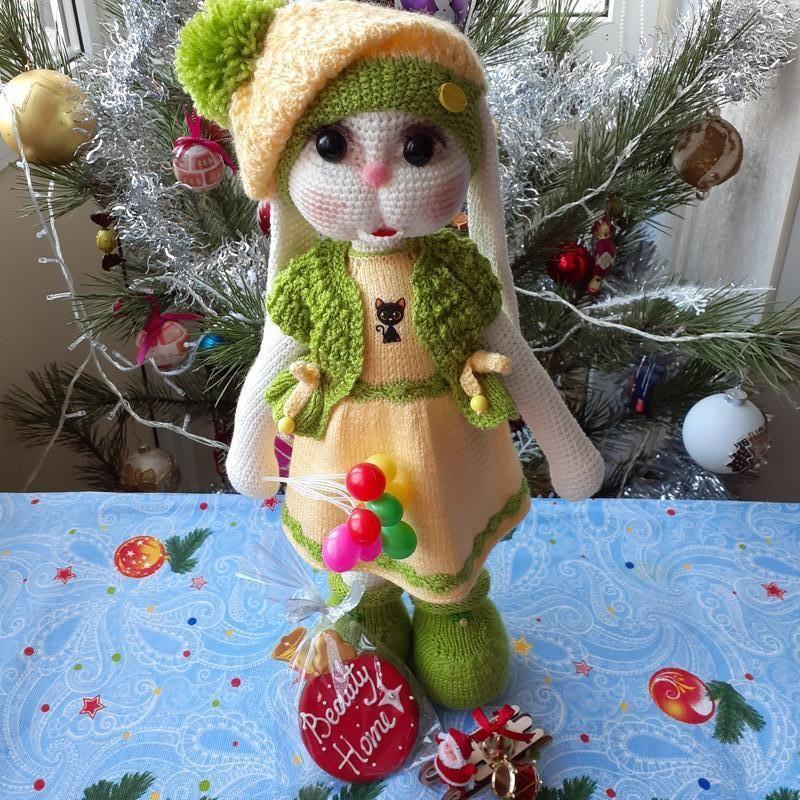 Комплект одежды сьемный(платье,берете,трусики,ботиночки,жилетик). Утяжки(формирование)в области мордочки и тела,есть хвостик. Нитки акрил,наполнитель халофайбер. Дополнительные характеристики: Пол: Для девочек Вид : Зайчик