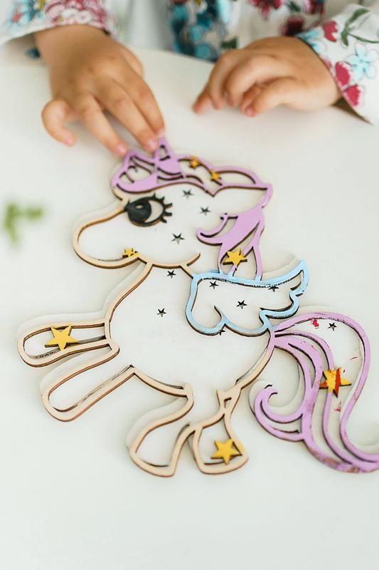 Подарунок для дівчинки дерев'яна 3д розмальовка єдинорі