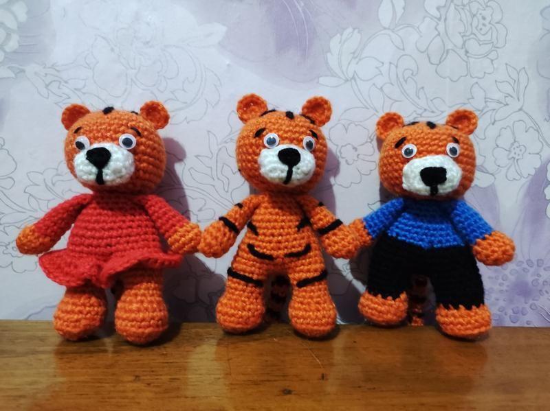 Тигрята выполнены из 100% акрила, наполнитель холлофайбер,высота 12 см.