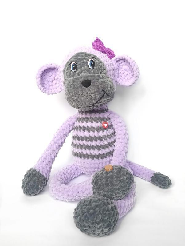 Очаровательная обезьянка, связана из плюшевый пряжи. Очень мягкая и гипоаллергенная. Рост: 30см сидя и 57 см в полный рост. Дополнительные характеристики: Пол: Для девочек Пол: Для мальчиков Товар под заказ