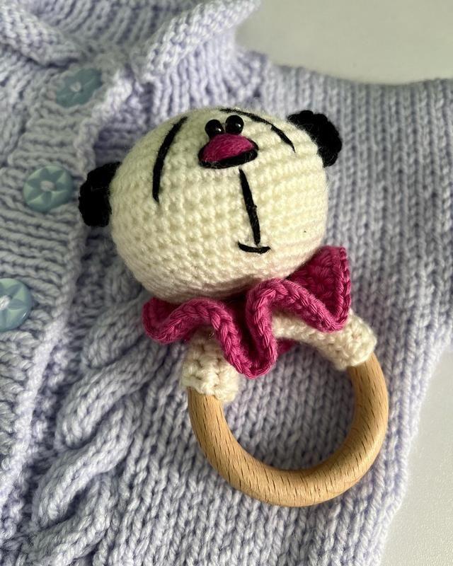 Погремушка для малышей «Пандочка» с приятным звуком, который можно услышать на видео. Изделие ручной работы вязаное крючком. Все элементы надежно закреплены. Дополнительные, более детальную информацию могусунуть в личные. #изобран излюбою💞 #панда🐼