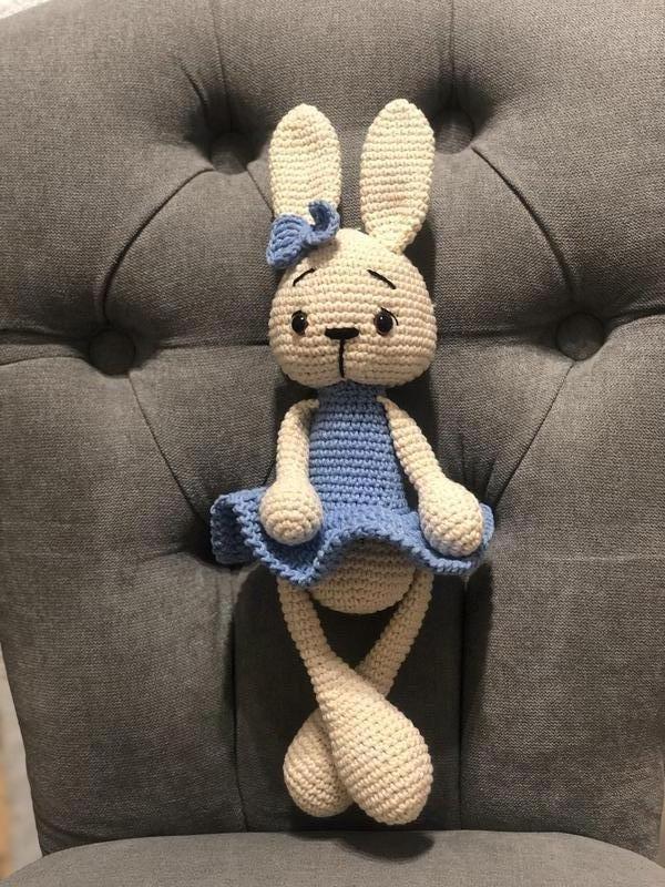 Детская игрушка «Зайчик» Звʼязана гачком Пряжа -бавовна , акрил Наповнювач холлофайбер Размер игрушки 35см