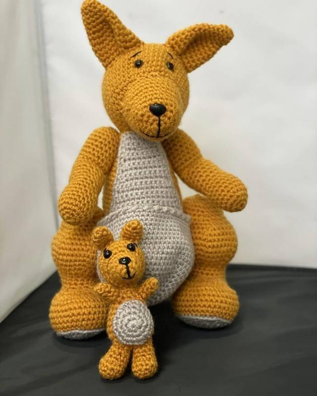 Игрушка кенгуру вязанная. Пряжа полушерсть, наполнитель холлофайбер.