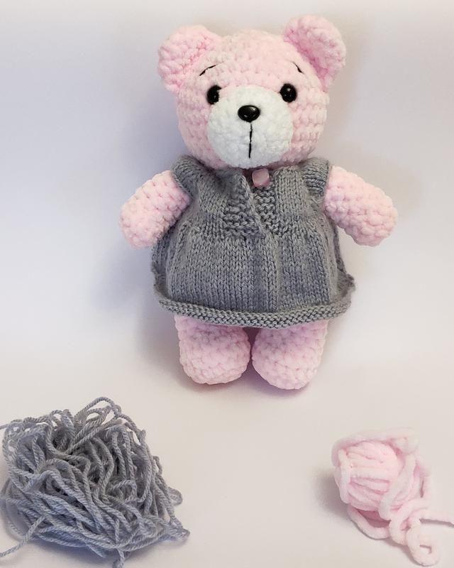 Мишка вязанный крючком в одежде. Девочка в платьечке, мальчик в штанишках. Пряжа плюшевая, наполнитель холлофайбер, одежда снимается. Дополнительные характеристики: Вид : Мишка