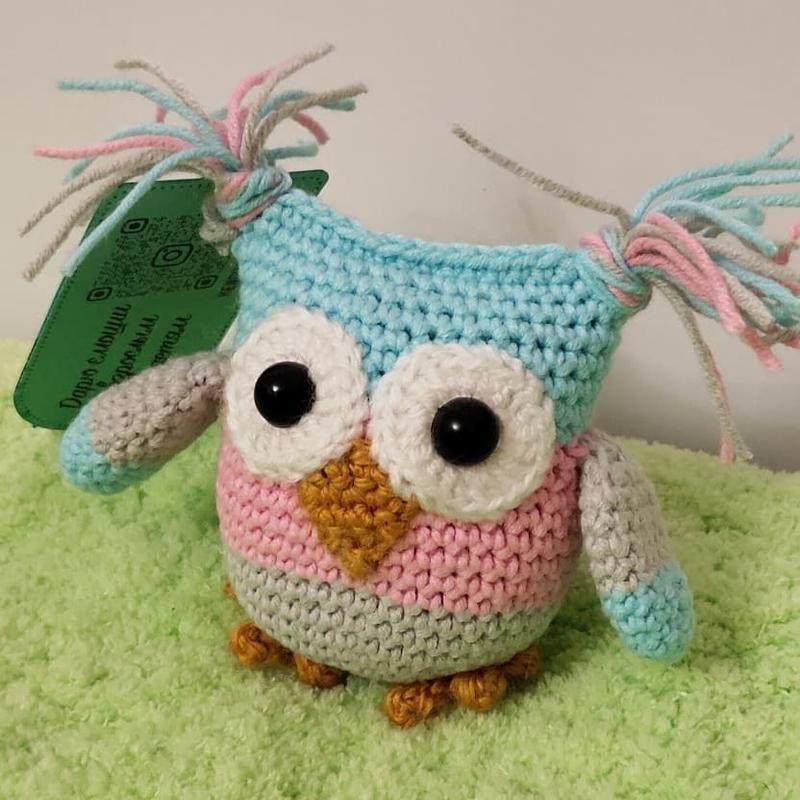 Сова вязанная. Пряжа хлопок с акрилом, наполнитель холлофайбер, глазки на безопасном креплении. Рост игрушки до хвостиков 8 см. Дополнительные характеристики: Вид : Сова