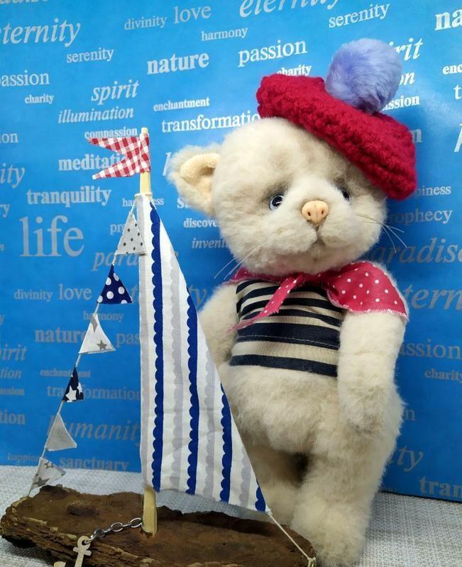 Моряк кот 🐱 сшит из меха алпака.5 шплинтовое крепление.Все части тела подвижны.Кот может самостоятельно сидеть и стоять. Наполнен опилками.продается вместе с кораблики ручной работы. Ждёт любящих родителей