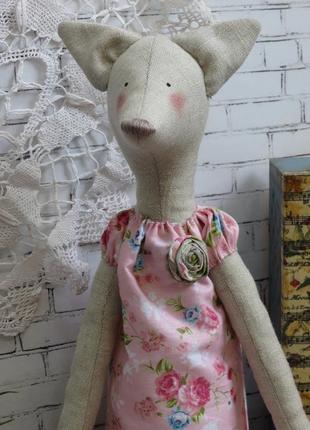 Лиса в стиле Тильда сшита из натурального хлопка. Лапки у лисы двигаются, лиса сидит самостоятельно, стоит с опорой. Лисичка одета в красивое платьице с брошью. Лиса Тильда отличный подарок и для женщины и для девушки. Ну, а девочка будет от лисы просто в восторге! Также эта стильная лиса может стать чудесным украшением Вашего интерьера и добрым другом! Дополнительные характеристики: Вид : Лисичка Товар под заказ