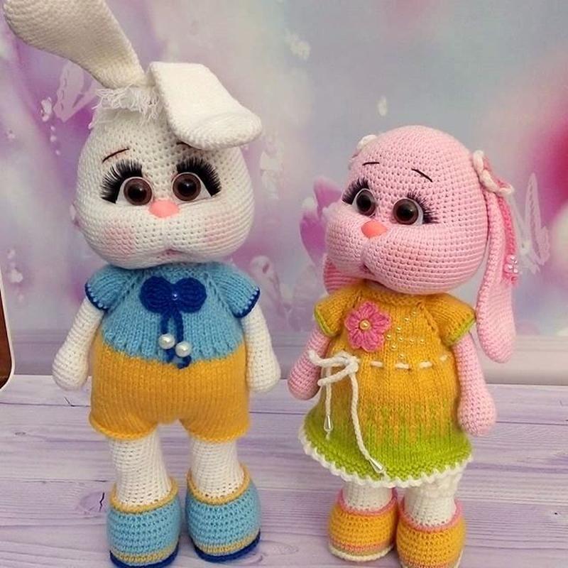 зайки кнопочки связаны из детской гипоалергеной пряжи,стоят сами одежда не снимается,наполнитель холофайбер,ручная стирка,девочка рост-38см цена-750грн-продана,. В наличии мальчик-42см (без ушек,длина с ушками-55см)-цена-950грн Дополнительные характеристики: Пол: Для девочек Вид : Зайчик