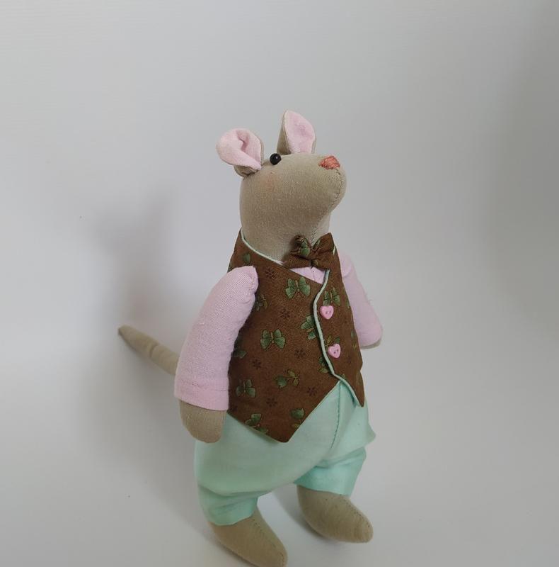 Текстильный крыс ручной работы ростом 20см. Самостоятельно стоит, может сидеть. Ручки и ножки подвижные,одежда не снимается.