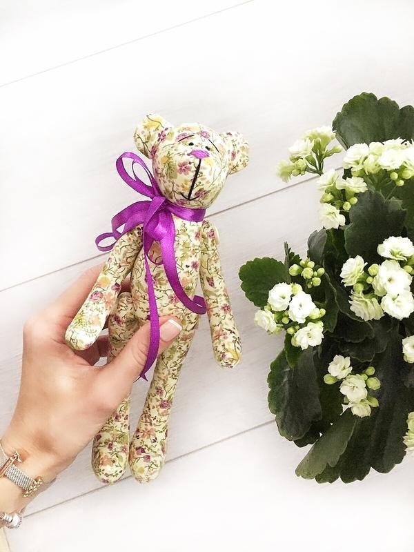 Цветочный Мишка тильда с фиолетовой лентой. Ручная работа Рост 24 см Все лапки подвижны, сидит самостоятельно, стоит с опорой. Материалы: изысканный хлопок с цветочной расцветкой, атласная лента; наполнитель - синтепон. Игрушки мишки 🧸 пользуются большой популярностью. Их приобретают в подарок ребенку, девушке, маме. Такой игрушкой пытаются подчеркнуть нежность, заботу, внимание, трепетность и теплоту в своем отношении к родному и дорогому человеку. Подобные подарки уже не одно десятилетие пользуются популярностью во многих странах к любому празднику и по любому поводу. Дарите счастье и тепло родным - дарите Мишек. На все вопросы с радостью отвечу. С ув. Таня