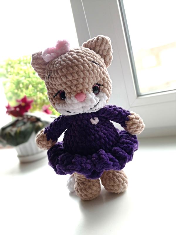 Киця, виготовлена з гіпоалергенної плюшевої пряжі, наповнювач холофайбер, фурнітура на безпечному кріпленні. Зріст 20см, Можливий повтор в інших