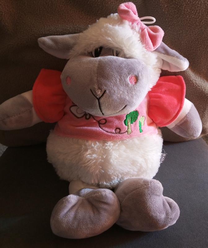 милая мягкая овечка,платице снимается ,глазки вышитые,есть петелька для подвешивания, высота около 40 см