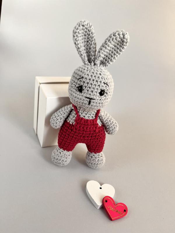 Игрушка зайка ручний работи,Мягкая,легкая,приятная для деток. Матеріал: -полухлопковая нить -наповнитесь холлофайбер -глазки на безопасном креплении -Рост 17см Уход-ручная стирка с жилети средством в теплий воде. Игрушка приедет к вам в коробке.