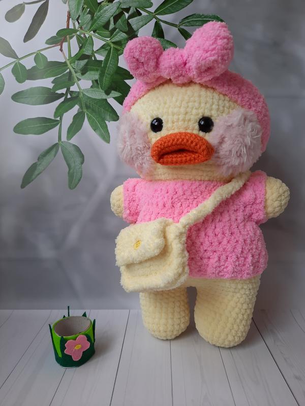 Знакомьтесь с нашей очаровательной уточкой Лалафан! Она станет настоящим украшением любой коллекции мягких игрушек и верным другом для вашего ребенка. Высота: 29 см. Материал: плюшевые нити, мягкие и приятные на ощупь. Глаза: безопасное крепление, обеспечивающее прочность и безопасность для детей. Одежда: милая розовая кофточка и шляпка с бантиком, которые добавляют уточке особый шарм. Аксессуары: сумочка, которая делает Лалафан еще более привлекательной и готовой к приключениям. Все детали изготовлены вручную с вниманием к деталям. Использованы только высококачественные материалы, безопасные для детей. Игрушка идеально подходит как для игр, так и для декоративных целей. Уход: рекомендуется ручная стирка при температуре до 30°C. Сушить естественным путем, избегая прямого солнечного света. Эта утка Лалафан станет отличным подарком для любого ребенка или даже для взрослого, который ценит ручную работу и уникальные вещи. Не упустите возможность приобрести эту милую игрушку и подарить радость своим близким. Под заказом изготавливаю желаемый цвет и аксессуарами.