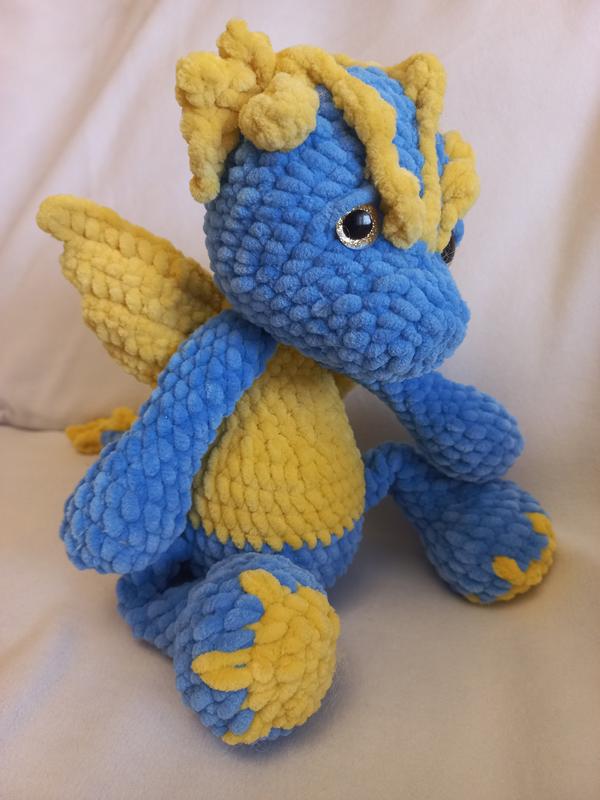 Мягкая игрушка Дракон из плюшевой пряжи, символ этого года. Будет отличным подарком для ребенка или любимого. 100% ручная работа. Рост - 30-35 см. Нитки - Плющева пряжа. Безопасная крупка глазок и носика. Наповнювач - холлофайбер. Можно заказать любого цвета!!! Под заказ!!! Цина - 600 грн.